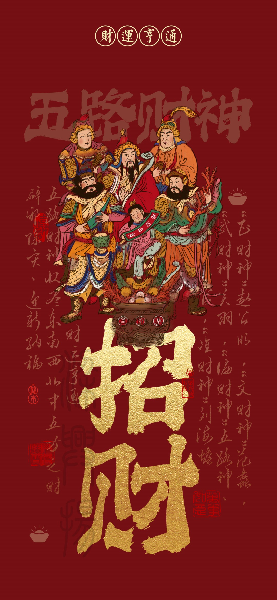 五路财神,新年壁纸,春节